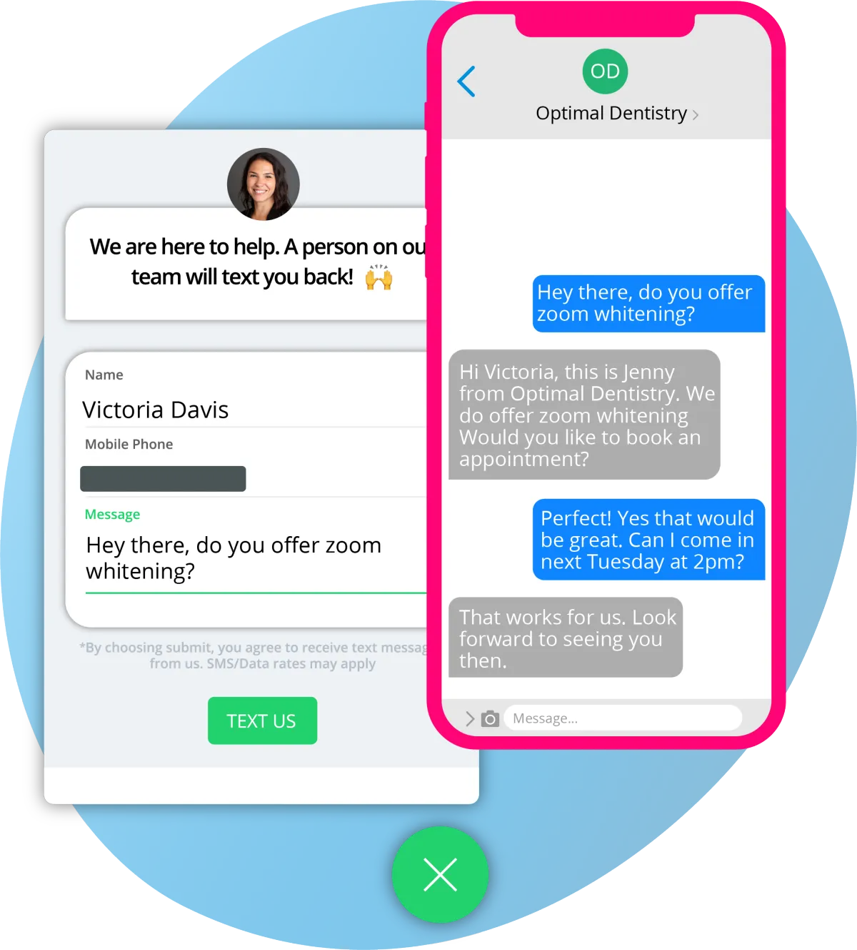 Connect with website visitors through text message and communicate where ever you are.